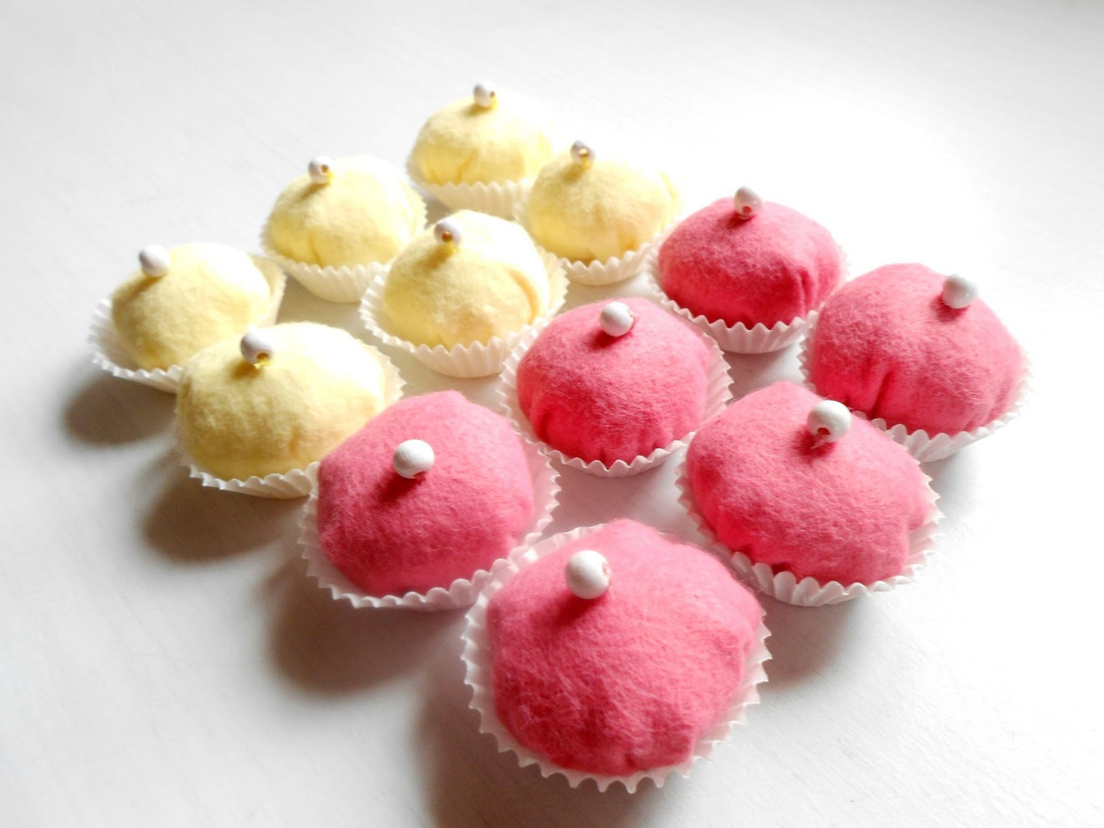 Visitando os inspiradores blogs amigos, vi num post da Maria sobre chocolates no artesanato e outro sobre comidinhas de feltro em geral alguns docinhos super interessantes para decorar a festa ou até para as meninas brincarem mesmo, mas não tinha nada muito parecido com beijinhos. Ao começar a planejar a festinha dela, olhei o que tinha, não queria investir muito, já tenho um material considerável em casa dos últimos meses e queria inventar em cima disso, não só pela economia como também pelo desafio da criação. Percebi que havia muito rosa e amarelo e usei isso mesmo.