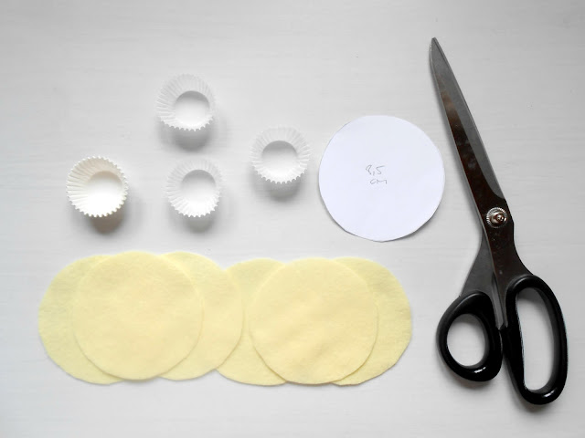 - feltro cortado em círculos de 8,5 cm de diâmetro