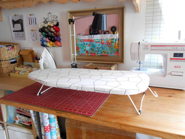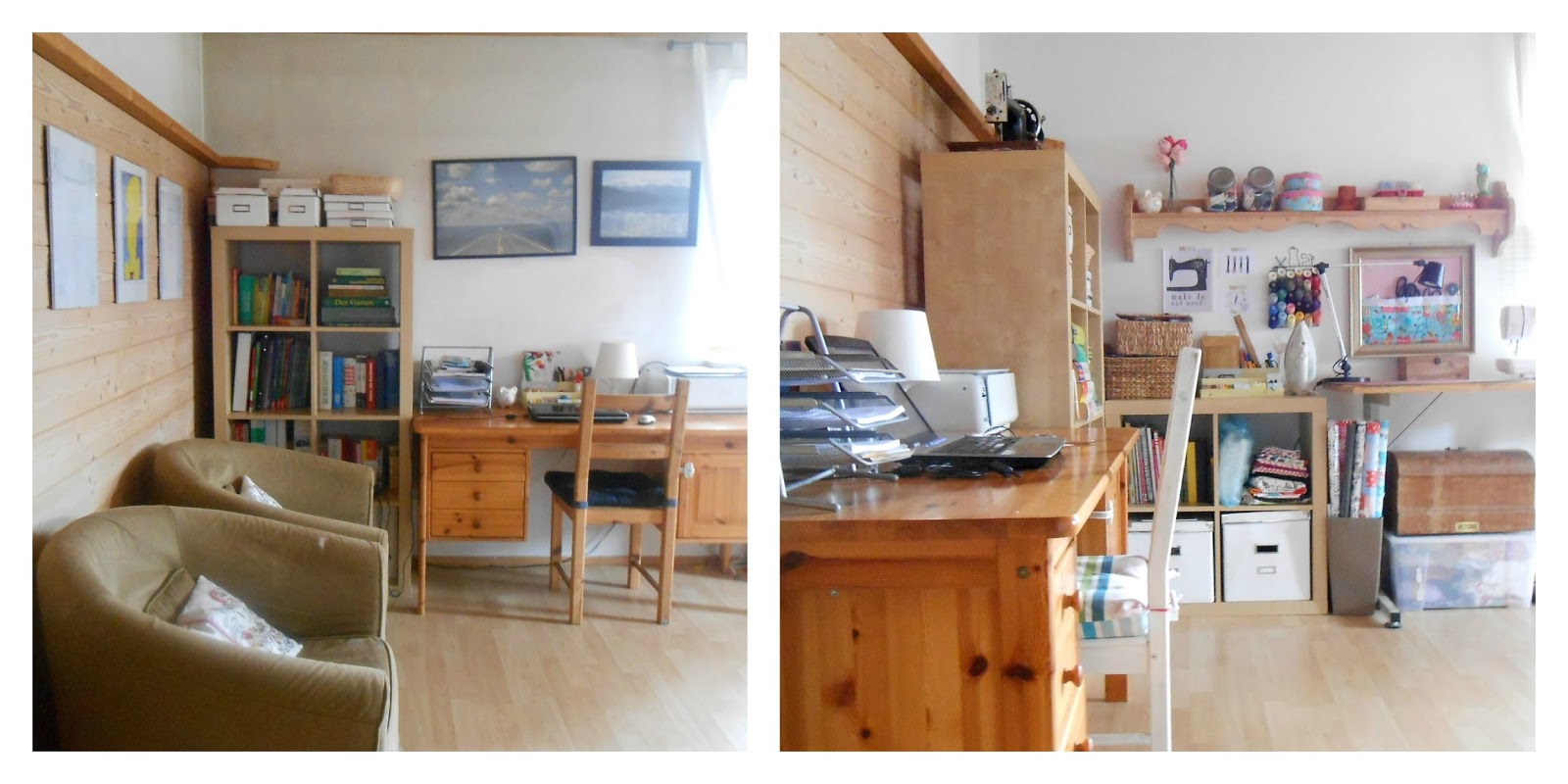 Ainda aguardo meu filho se acostumar com o novo cantinho pra não usar a cadeira para alcançar as coisas, depois trago uma cadeira só pra costurar. :)