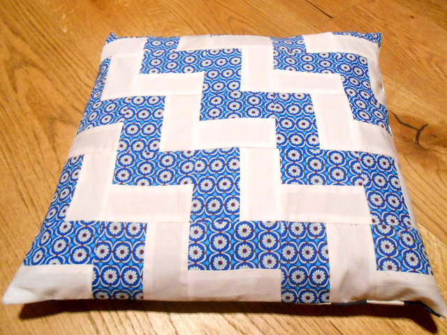Essa capa foi uma das primeiras aventuras que tive na costura, está ali há anos e eu achei que já fiz coisa melhor e poderia me esforçar mais, então refiz um projetinho que já passou por aqui com essa capa de almofada zigue zague, que me levou a sair do até então 'mais do mesmo' Nine Patch':