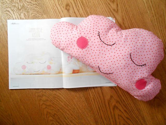 Recorri a revista Mollie Makes, revista britânica que aborda várias formas de artesanto, que na edição alemã de dezembro publicou um especial apenas de costura. Lá encontrei uma famosa almofada de nuvem muito presente na timeline do Pinterest de amantes de costura e decoração de quarto infantil.