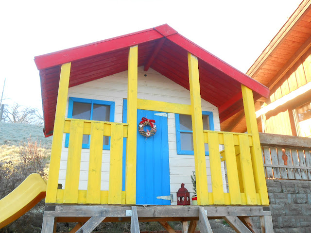 Até a casinha de jardim das crianças ganhou guirlanda: