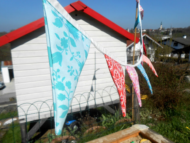 Nossa casa é simples e modesta em comparação aos lindos jardins e construções vizinhas. Este ano, construiremos uma garagem e passaremos a ver melhor o nosso cantinho. A simplicidade da nossa casa me faz querer costurar mais coisas coloridas para alegrar o jardim que eu, vinda de uma metrópole de concreto, ainda não domino depois de quase 7 anos morando aqui. Acredito que o colorido deixa a nossa sala de estar de primavera e verão mais bonita e alegra a infância dos meus filhos.