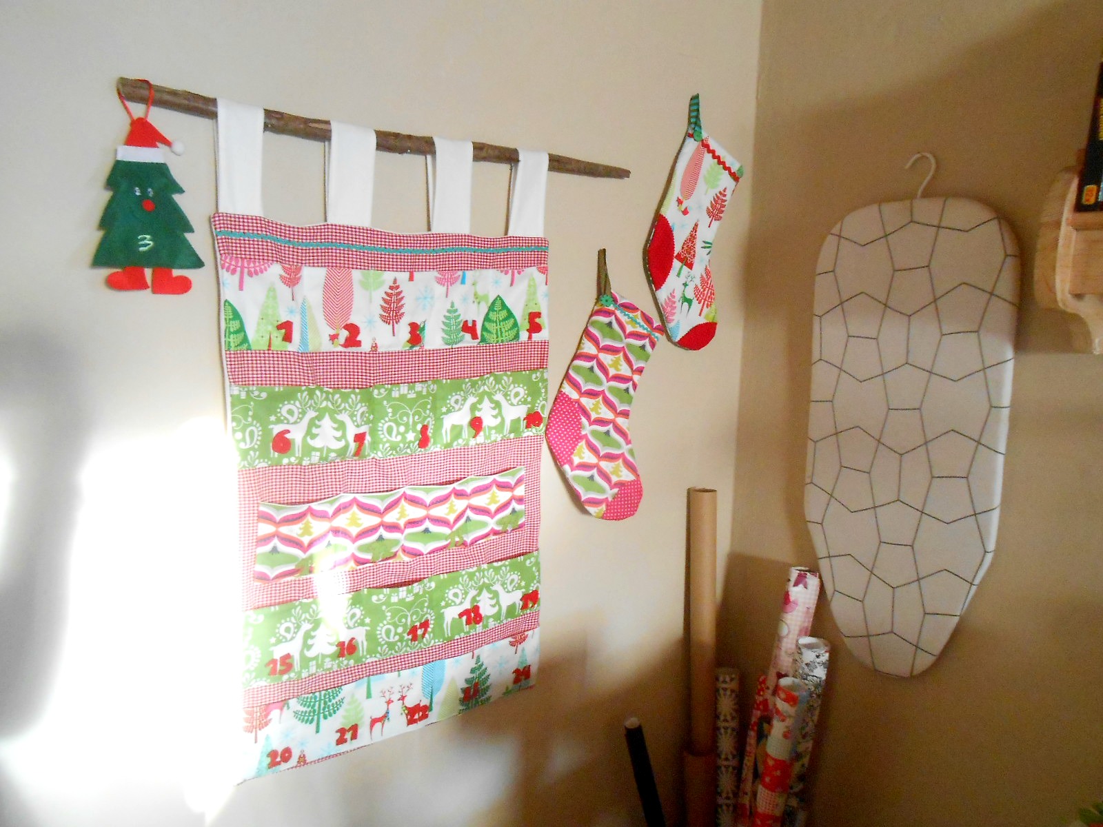 Aqui se vê onde o calendário do advento ficou: bem no meu cantinho criativo.