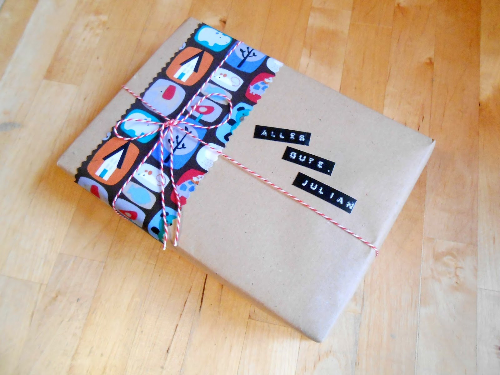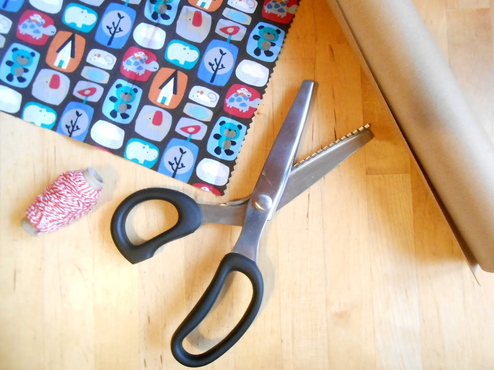 Acabou o papel de presente de menino. A festa é daqui a pouco e esqueci de comprar. Foi papel craft mesmo. Lembrei das super dicas pra embalar presentes da Rosa no seu Le Paquet e cortei uma tira de tecido com tesoura zigue zague pra esconder a simplicidade do papel craft.