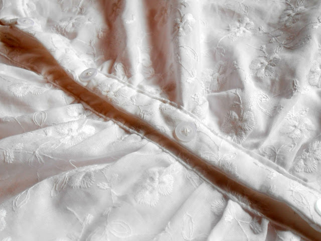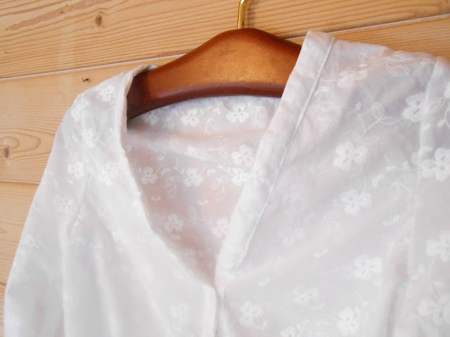 Do último fim de semana, os frutos foram uma saída de praia e uma camisa, ou jaquetinha leve como chamamos aqui, com aqueles tecidos que são levemente transparentes, para blusas que se usam com um sutiã bem bonito ou com um top. Optei por branco porque as estampas da pequena loja de tecidos aqui da cidade eram assustadores, me senti nos anos 80. E amo branco. Tenho até uma saída de praia com o mesmo tecido dessa que costurei mas é um macaquinho (overall) e foi feito anos atrás pela minha mãe.