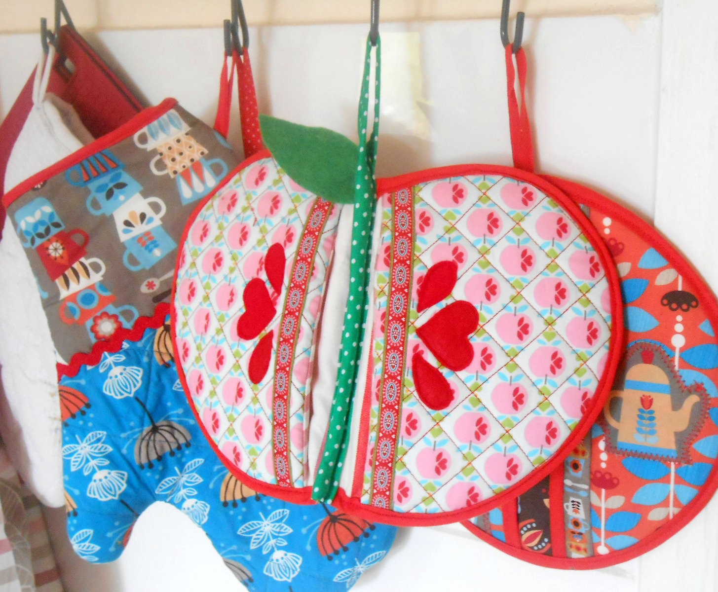 Já faz tempo que queria tentar esse tutorial aqui. É de uma das minhas designers de tecido preferidas, que também bolou essa estampa de maçã. O tecido estava aqui todo esse tempo e nunca fiz esse pegador de panela pra minha cozinha. Pra se ter uma idéia, o tutorial foi postado no blog dela em 2011 e eu o vi um ano depois mais ou menos, portanto, foi praticamente uma promessa a ser cumprida: